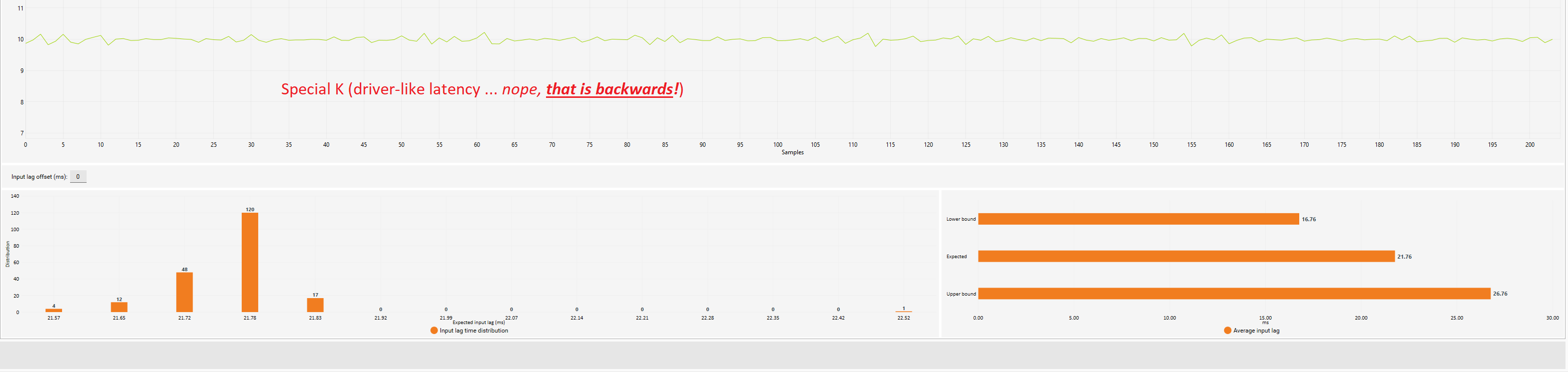 Not even worth distributing screenshots for that, the results need to be seen in person to be believed. And I need validation of these results, because if that’s repeatable in other games then Reflex is irrelevant and Special K should be a vendor agnostic path to frame pacing bliss.