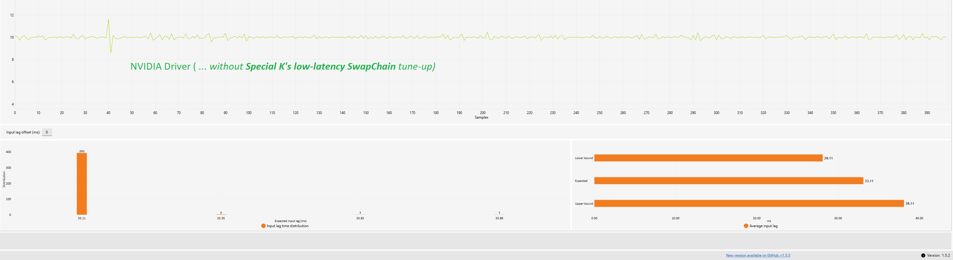 The NVIDIA limiter’s capable of slightly lower latency than SK, but it only achieves the results in the first screenshot because Special K has done low-level tuning of the game’s swapchain for lower latency. Take SK out of the equation and NVIDIA’s actually -not- looking very competitive.