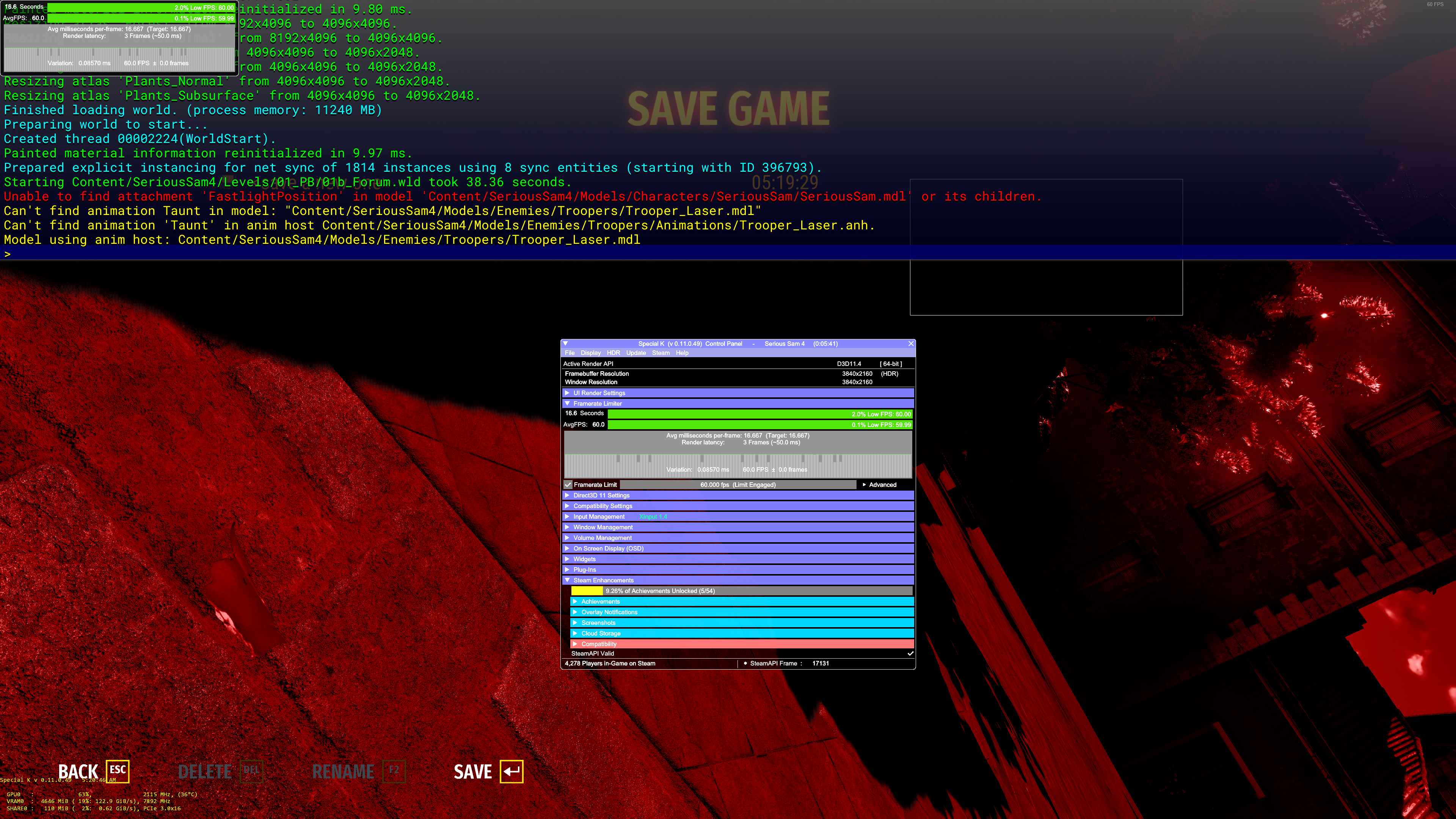 Whatever the hell ATLUS did to their game, it’s running like garbage now. But this shows the difference between frametime and latency quite nicely. The game’s running at 2 FPS (so ~500 ms frametime), however, the render queue is so backed up with undisplayed frames that latency is > 3000 ms.