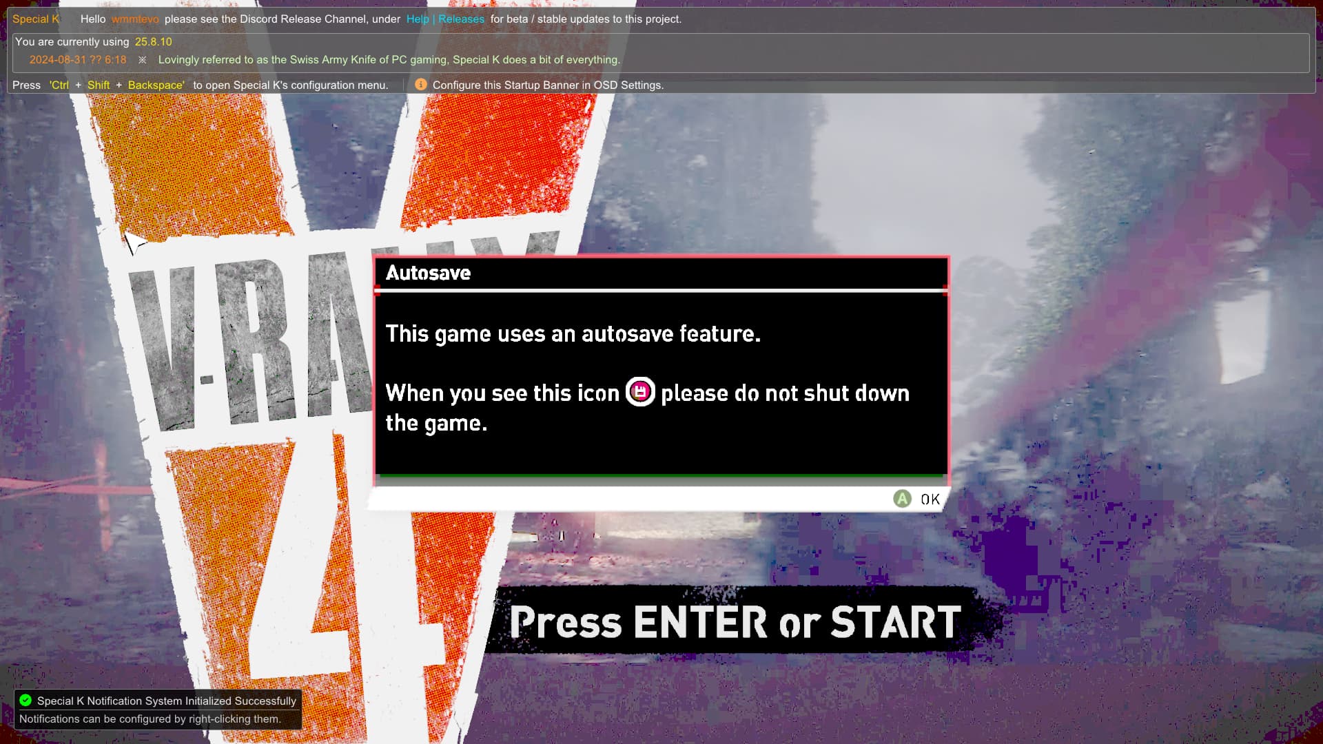 Maybe I need to change some special k settings to fix this. It will be easier to figure out the cause of the problem if have game logs.